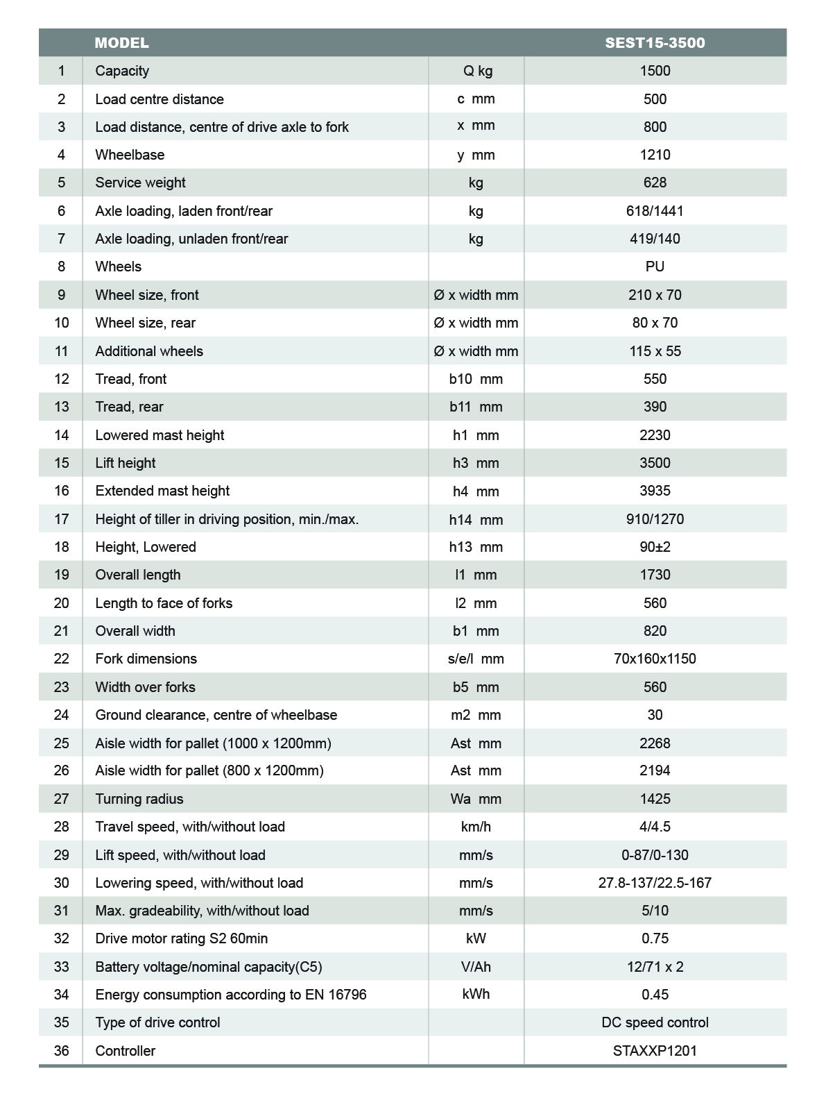 The 1500 Kg capacity ensures safe handling of medium to heavy loads, while the ergonomic handle and safety features provide a secure and comfortable operation for all-day use. This full electric walkie stacker is perfect for businesses seeking to improve warehouse efficiency, reduce labor costs, and enhance safety.