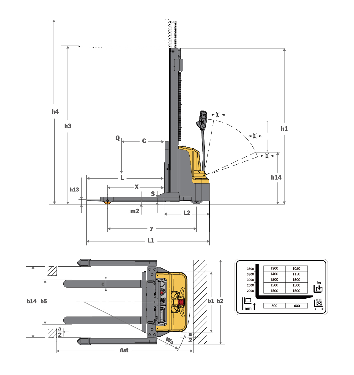 This walkie electric stacker is equipped with an ergonomic tiller handle, ensuring smooth control, precise maneuvering, and enhanced operator safety. The 1500 Kg load capacity combined with a robust steel frame guarantees long-term durability even under heavy-duty operations.