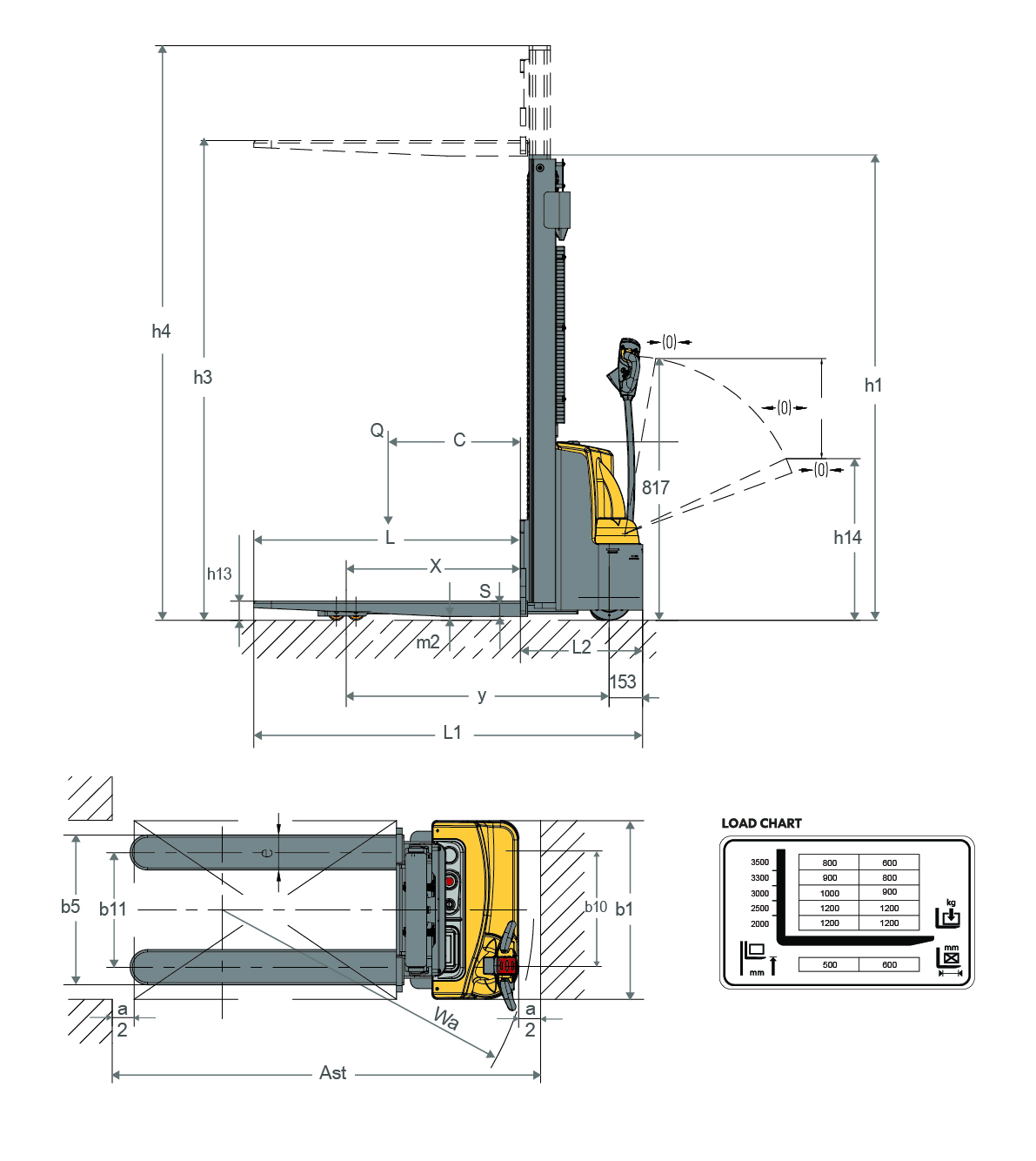 - Low mast static height – Easy to operate in containers and elevators with less than 3.3m lifting height.