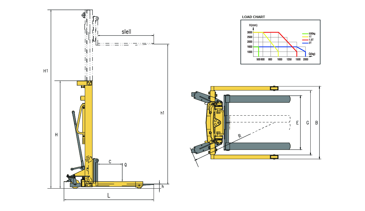 With load capacities of 1000 Kg, 1500 Kg, and 2000 Kg, this manual hydraulic straddle stacker offers smooth lifting and precise control for stacking, loading, and transporting goods up to heights of 1.6m / 2.0m / 2.5m depending on the model. The ergonomic handle and hydraulic lifting system ensure effortless operation, while the rugged steel construction guarantees durability and long service life.